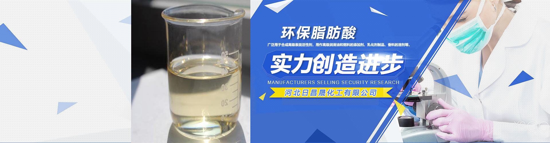 河北日昌晟化工有限公司是一家年產量10萬噸油化和6萬噸油酸、生產、營銷為一體的企業,主要生產植物油酸、脂肪酸、硬脂酸、植物瀝青、甘油的知名企業。公司成立于2012年,注冊資本:6000萬元 。總占地面積120畝,員 工總人數近130名,其中科研技術人員約占20%,專科以上學歷人員約占40%。公司技術力量雄厚,擁有嚴格的質量體系保障,產品品質可靠,暢銷 各地,并出口韓國、印度、中東及非洲等地,深受客戶歡迎和信賴。   河北日昌晟化工有限公司是 超大的油脂化工、脂肪酸、油酸生產企業。公司自 2012年成立以來,始···